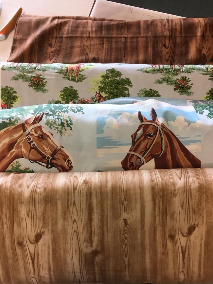 Here is the new Purebred II fabrics. The large horse print is a panel with 15 head shots. It makes me always smile because they are like the old paint-by-number pictures.